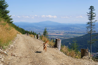 Pogodę na dziś zapowiadali idealną, więc zapadła decyzja, żeby pojechać do Szczyrku i wejść z Tiją na Klimczok. Udało się! Wyruszyliśmy z centrum Szczyrku niebieskim szlakiem przez osiedle Podmagurskie. Szlak początkowo prowadził asfaltem, a później kamienistą drogą.